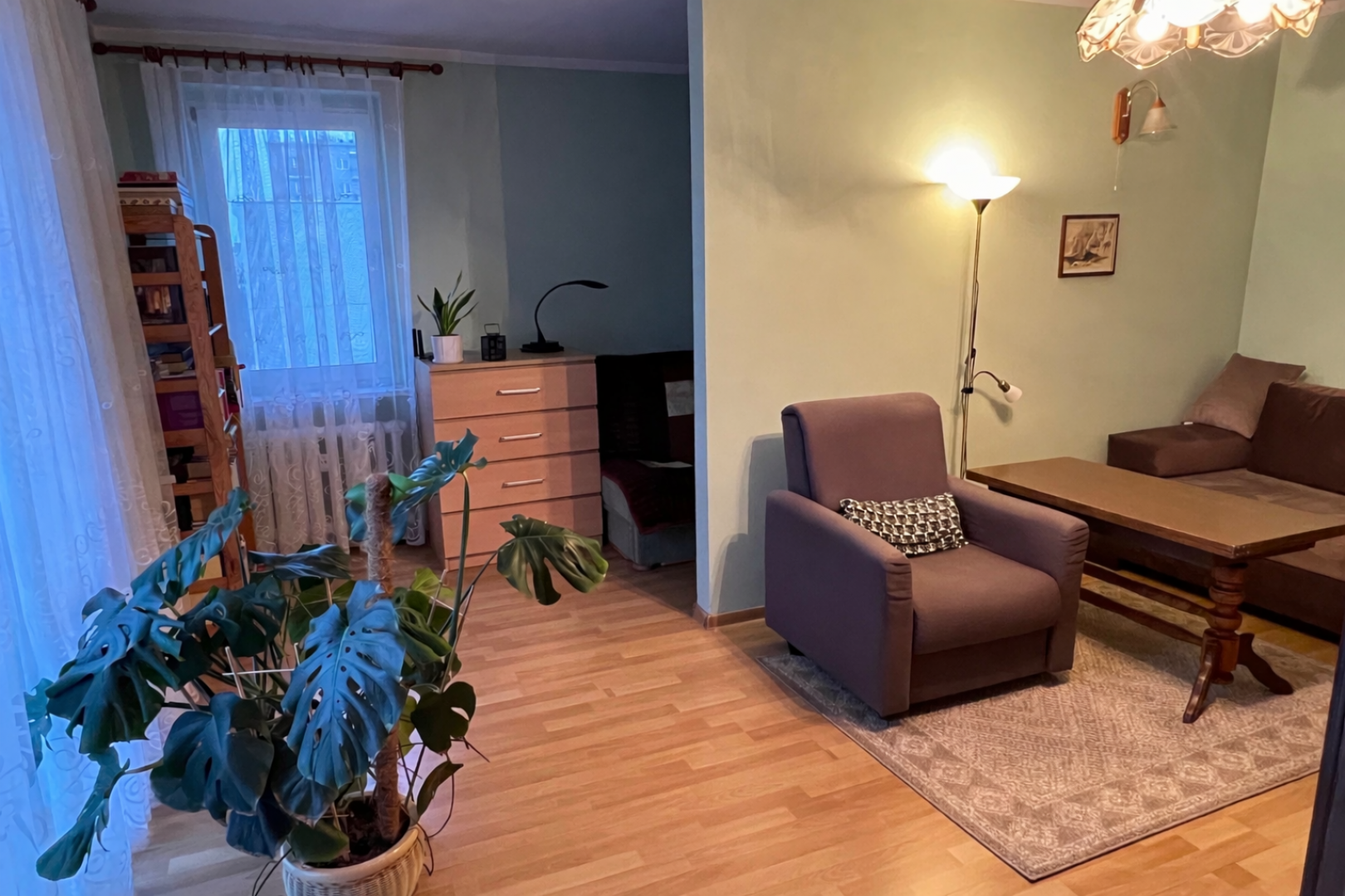 • salon z wydzieloną częścią sypialnianą
